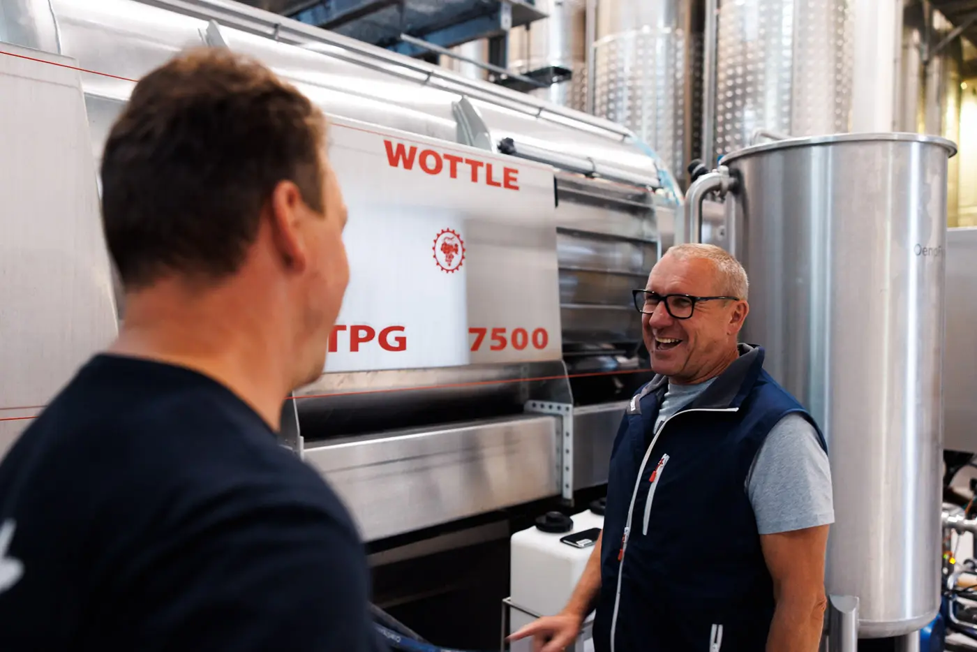 Der besonders nasse Erntemonat stellt dabei zusätzliche Herausforderungen. „Die Trauben waren mürbe durch den vielen Regen, die üblichen Pressparameter funktionierten einfach nicht.“ Auch diesbezüglich erwies sich die Nähe zu WOTTLE als Vorteil: „Ein Anruf, und wenige Minuten später war jemand da, um zu helfen.“