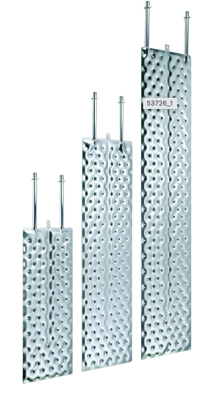 Kühlplatten sindaus Metall oder aus Kunststoff gefertigt. Ihre Anwendung ist denkbar einfach: Sie werden meistens unter Vorschaltung eines Druckreglers über die Hauswasserleitung befüllt und so entsprechend temperiert (manchmal auch mit entsprechender Kühlflüssigkeit wie Glykol). Eingehängt werden Kühlplatten manuell über das Domtürl.