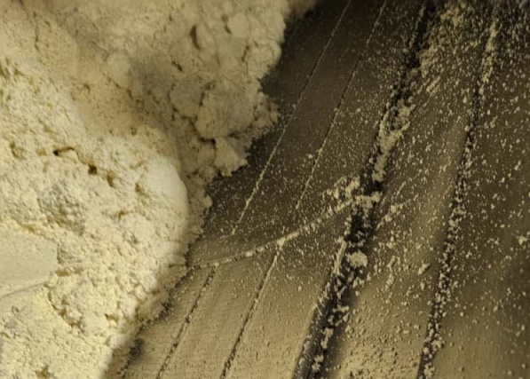 Im Bild erkennbar sind die trockene Topfenmasse und das fein perforierte Sieb.