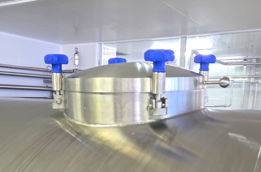 Die Lebensmittelhygienestandards erforderten aber noch weitergehende Änderungen: „Auch die Befestigung der Membran im Presskorb musste angepasst werden, um die Bildung von Bakterienherden zu verhindern.“ Immerhin steht die Membran, die sich durch Druckluft aufbläht, in direktem Kontakt zur Molke. „Die Befestigung wurde also hinter die Membran verlegt. Das machte eine zusätzliche Öffnung erforderlich, um zu Servicezwecken den Zugriff von außen zu ermöglichen. Ebenso musste der Zuschnitt des Membranmaterials entsprechend angepasst werden.“
