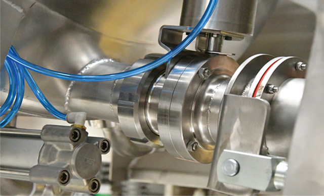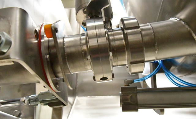Beim geschlossenen Press-System mit dichtem, pneumatischem Türl bietet die Presse alle Vorteile der Tankpresse mit der zusätzlichen Möglichkeit die Maische mit Gas zu überlagern, um eine sauerstofffreie Zone zu errichten und Oxidation zu verhindern.