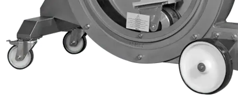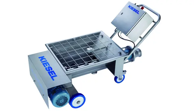 Optional sind ein Trichter mit Schnecke und ein Edelstahltransportwagen erhältlich.