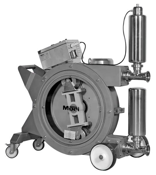In der Verdrängerpumpe bei WOTTLE dreht sich ein Edelstahlkörper mit drei Kammern. Dieser ist in unterschiedlichen Größen verfügbar, wobei gilt, dass ein größerer Durchmesser zu einer schonenderen Beförderung führt, weil weniger Umdrehungen pro Minute benötigt werden. Im Vergleich zur Impellerpumpe, die zwischen 300 und 600 U/min leistet, kommt eine Verdrängerpumpe auf maximal 60 U/min.